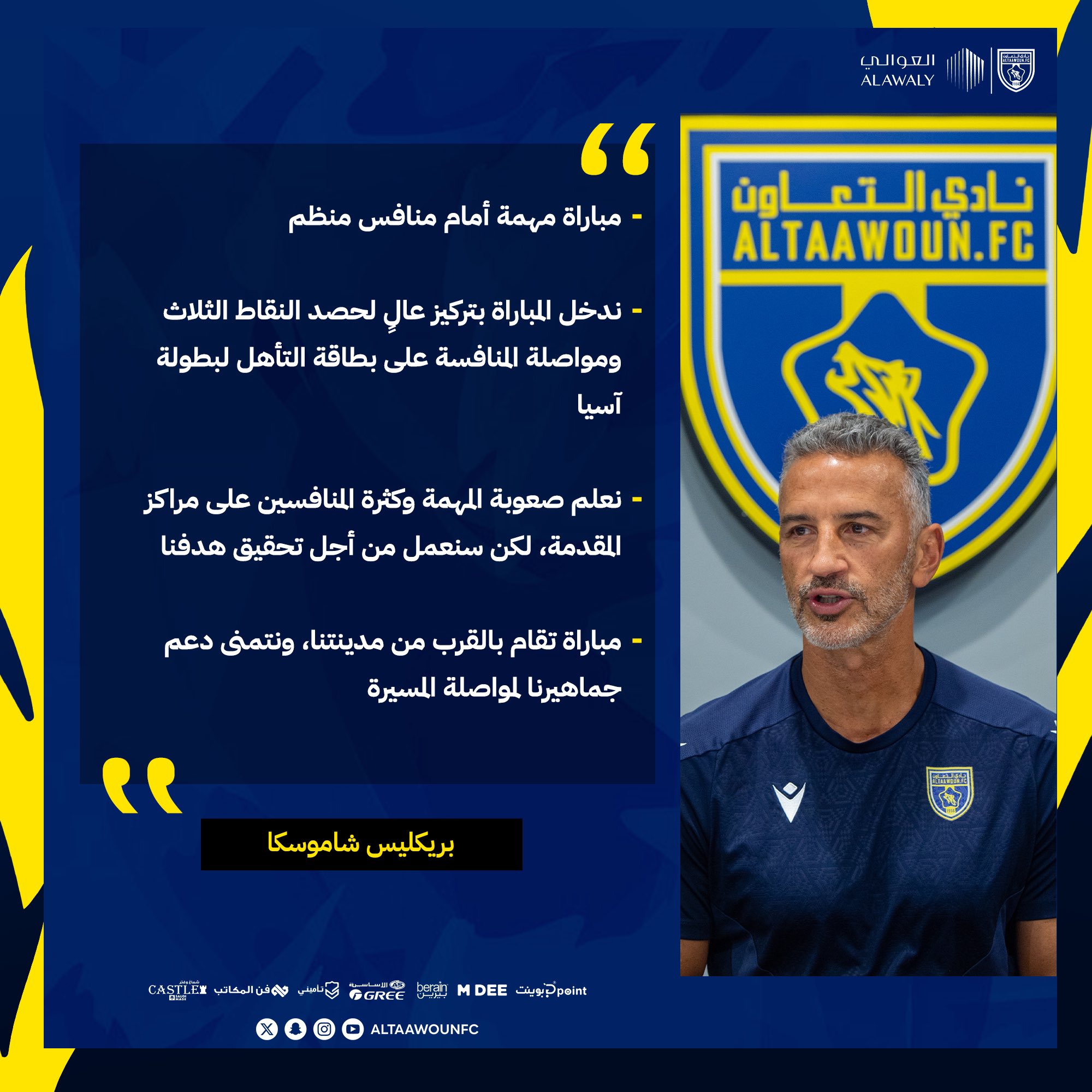 تصريحات المدير الفني شاموسكا قبل مواجهة الرياض