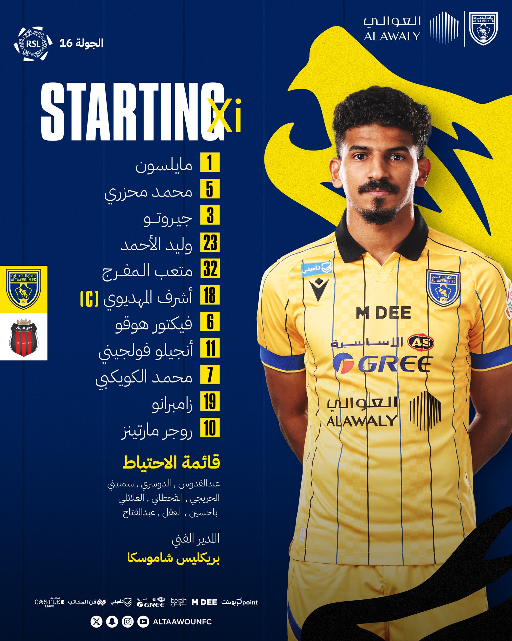 التعاون يكشف قائمته الأساسية أمام الأهلي