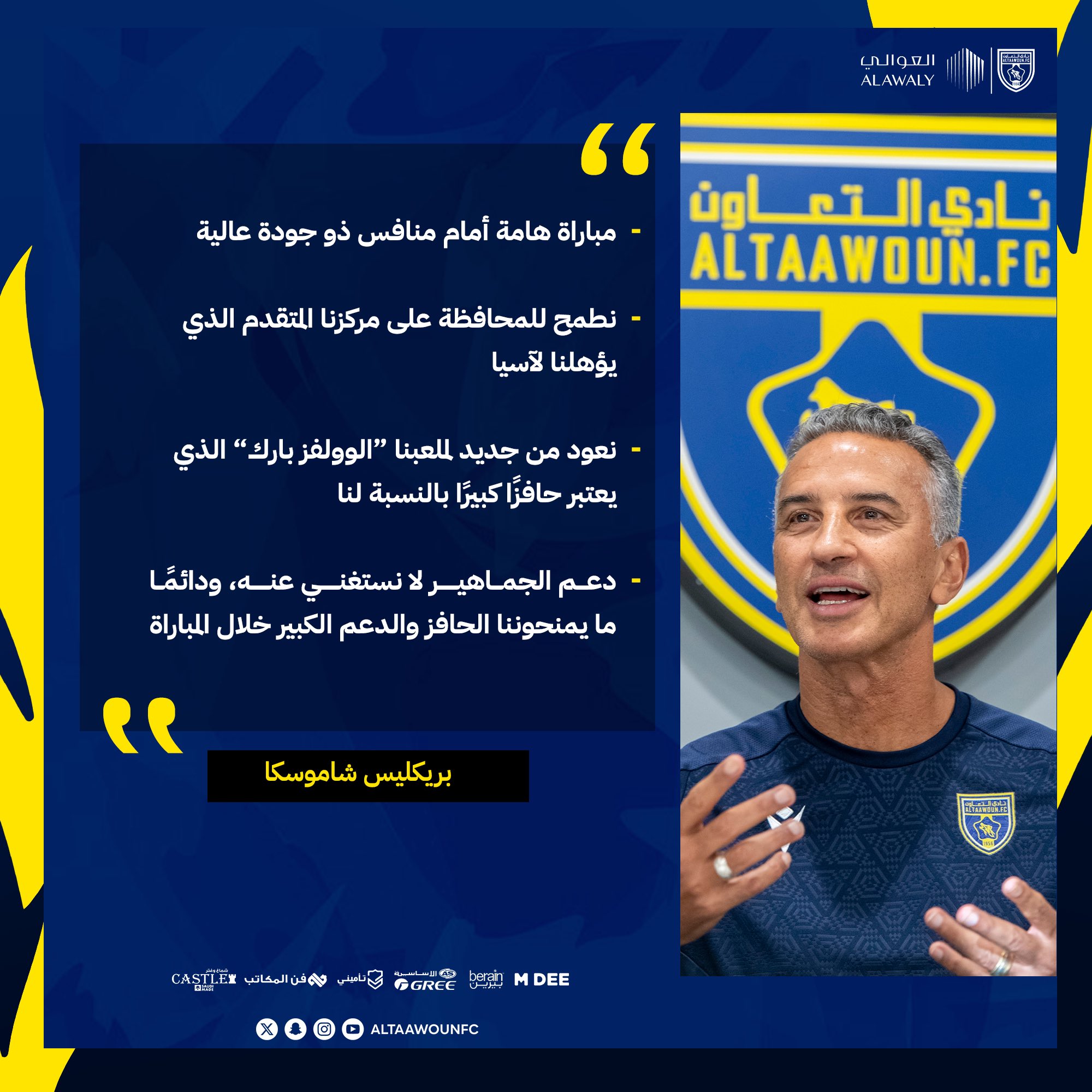 يستعد الفريق الأول بنادي التعاون لخوض مواجهته المقبلة أمام نادي نيوم وذلك يوم الأحد الموافق 23 نوفمبر عند الساعة 8:30 مساءً على ملعب الوولفز بارك