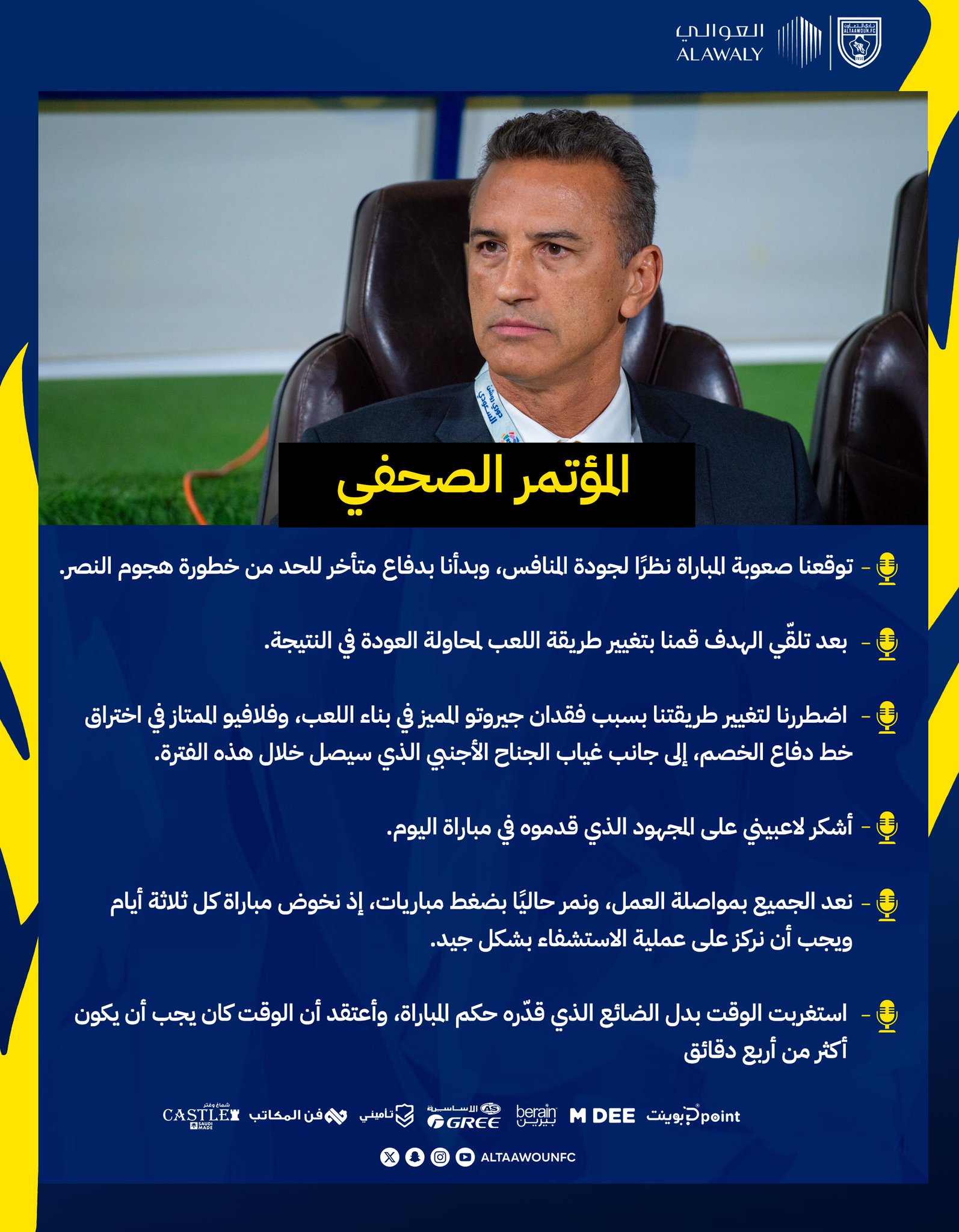 وتتمنى إدارة نادي التعاون للاعب التوفيق والنجاح في مشواره القادم مع الفريق 💛🐺